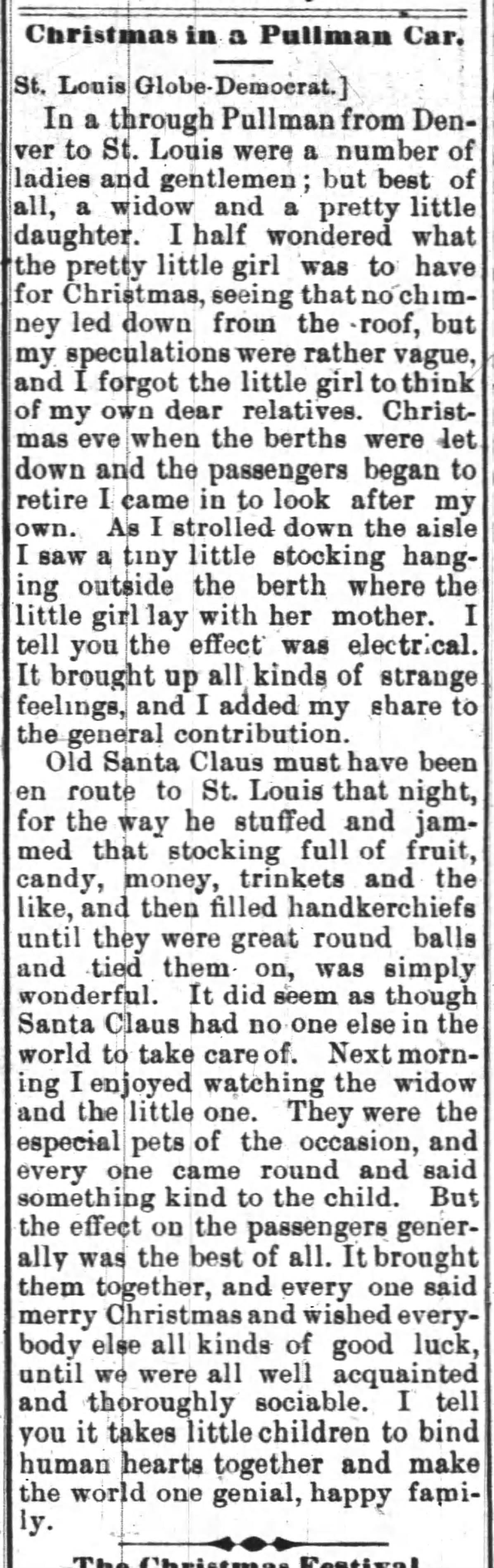 1 “Christmas in a Pullman car,” The Union Republican, Winston-Salem, NC, December 21, 1893, P. 1.